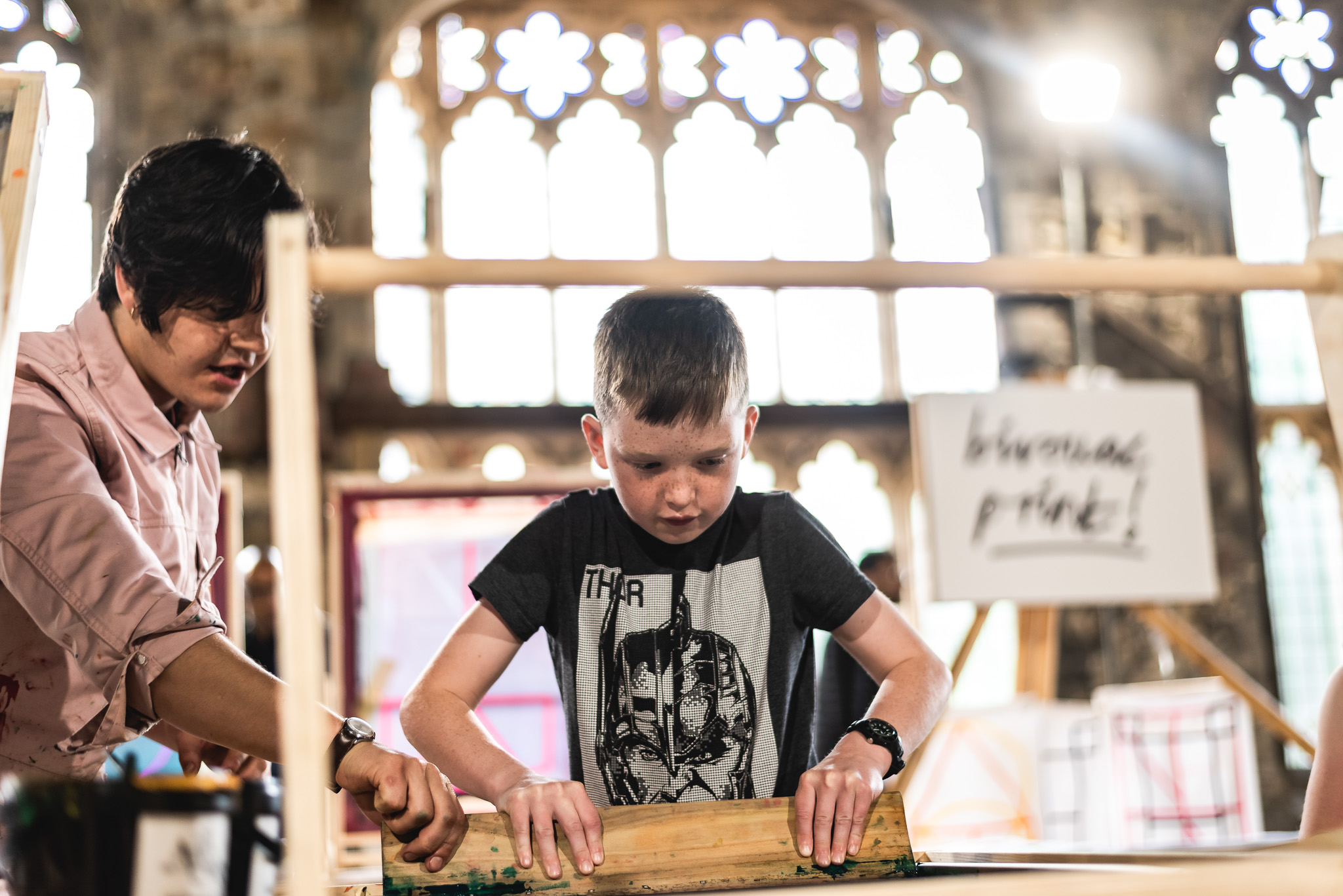 Giant Collaborative Lino Printing Workshop by George Murphy, 2023. Photo by Robin Zahler.