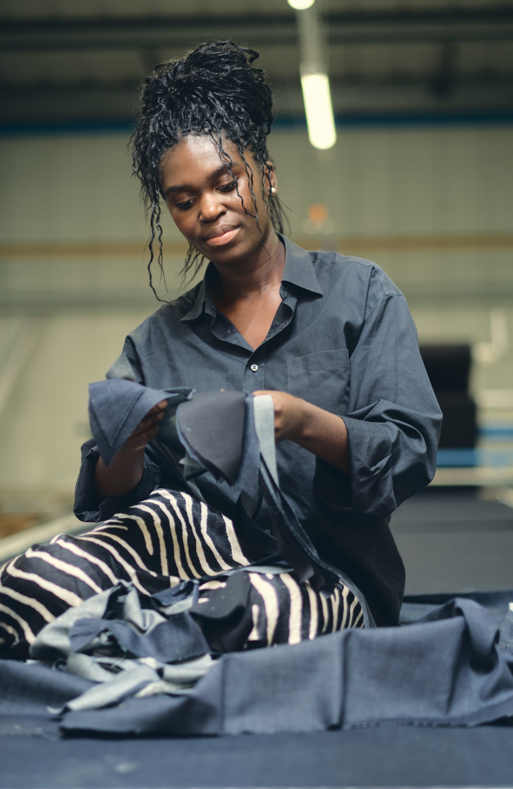 Multidisciplinary artist and social practitioner, Ibukun Baldwin, partners with state-of-the-art trouser and outerwear manufacturers Cookson & Clegg of Blackburn, to create a large-scale immersive installation using denim waste from the production of jeans for Patrick Grant’s Community Clothing brand.