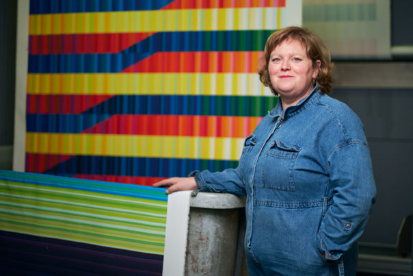 Margo Selby is a British textile artist and designer of woven textiles working with colour and geometric form. Her practice as a weaver is at the heart of all of the studio projects. Selby has established an expansive approach to working in textiles and, throughout her work, explores the relationship between man and machine, hand and industry, craft and technology.